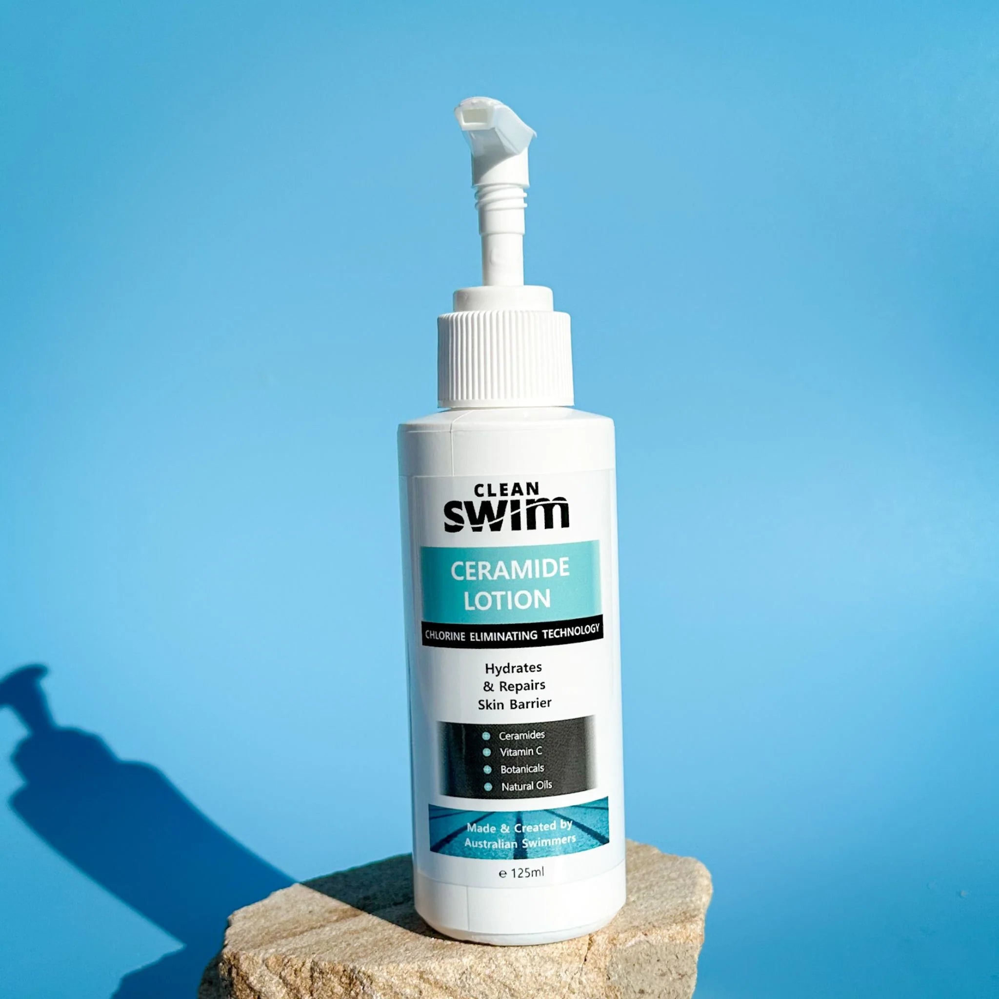 Apply the Clean Swim Ceramide lotion to your face and body and gently massage into your skin to hydrate, smooth and calm.