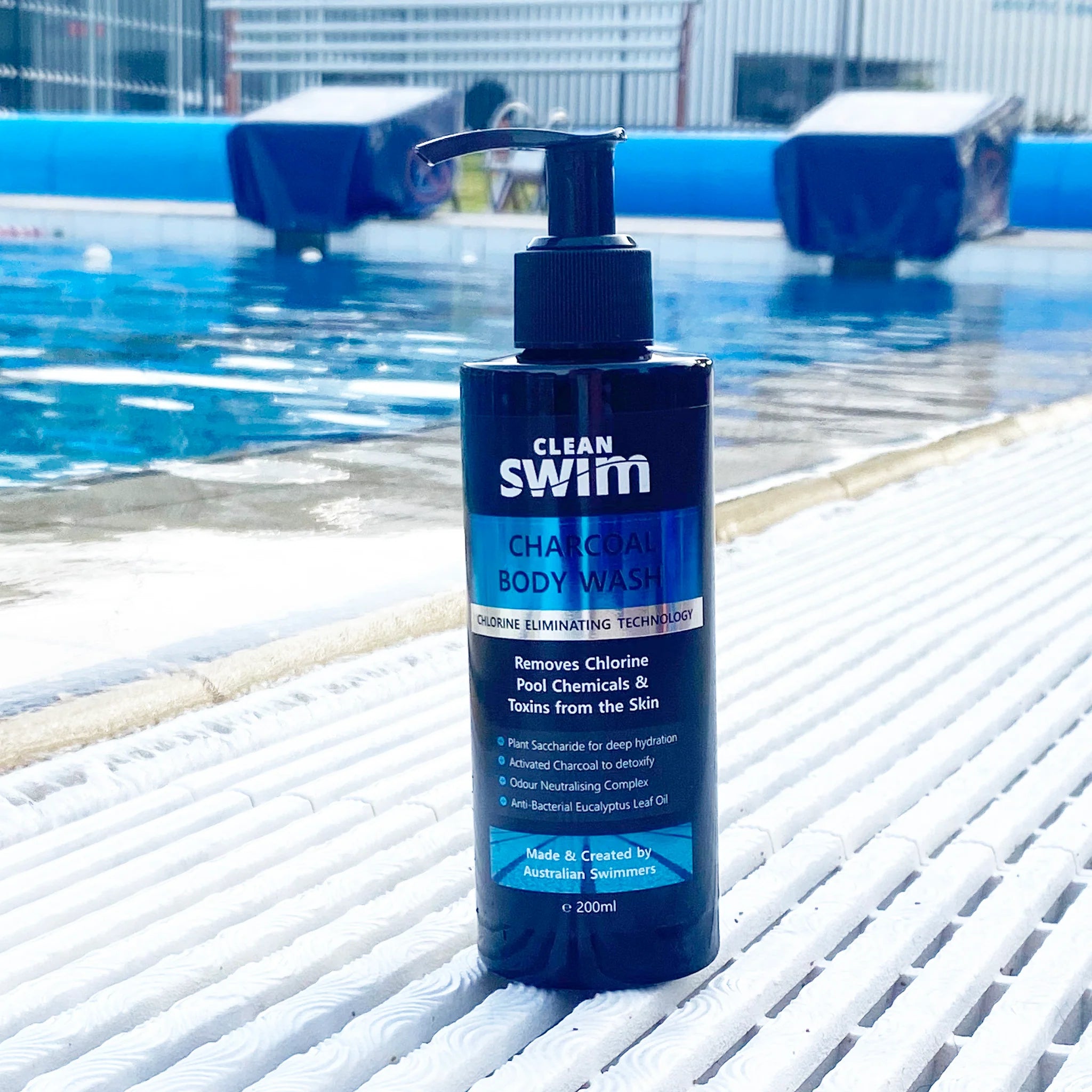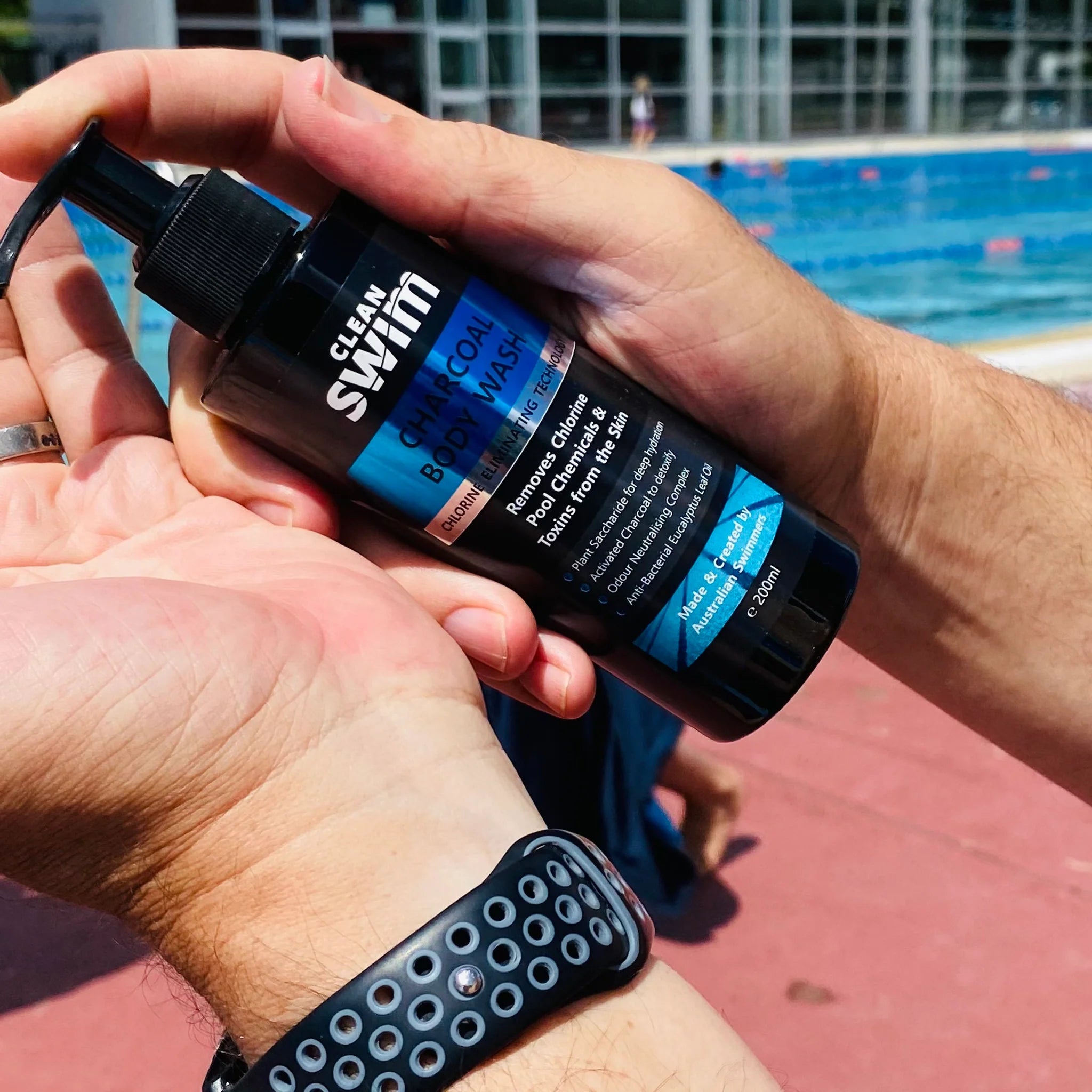 Our CHARCOAL BODY WASH utilises the natural detoxifying power of Activated Charcoal to neutralise the chlorine molecules left on your skin post-swim, by binding to and absorbing toxins on your skin, stopping them from penetrating the dermis and damaging the cells.