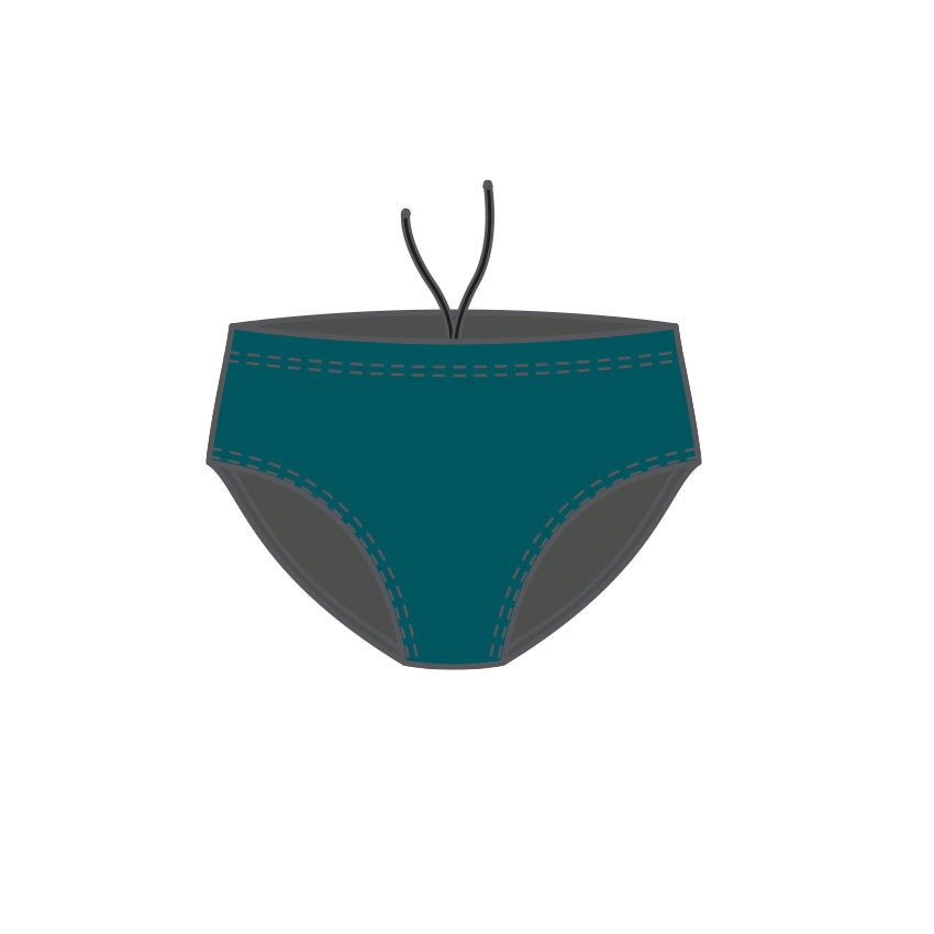 Basic brief style, mid width side, draw cord top with wide elastic for comfort and is reinforced at all stress points.