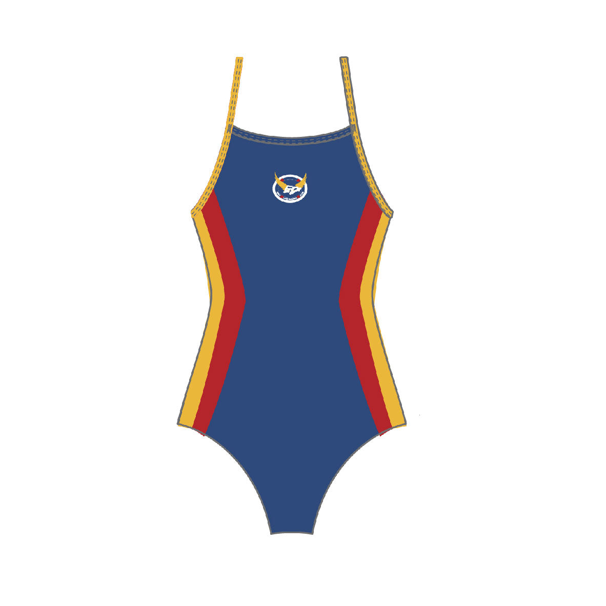 Flattering one piece training/racing suit.. Perfect for long days on the beach representing your club.