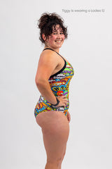 Bright Ladies Chlorine-Resistant One Piece Swimwear. Designed for support and optimal training, it's perfect for adventurous beach days or long training sessions. Welcome to ultimate swimsuit durability.